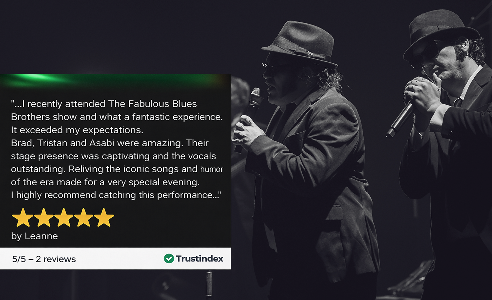 From full live-band Blues Brothers productions to Blues & dress up themed experiences, The Fabulous Blues Brothers delivers polished, unforgettable entertainment tailored to corporate audiences.